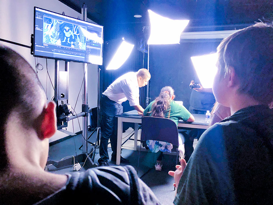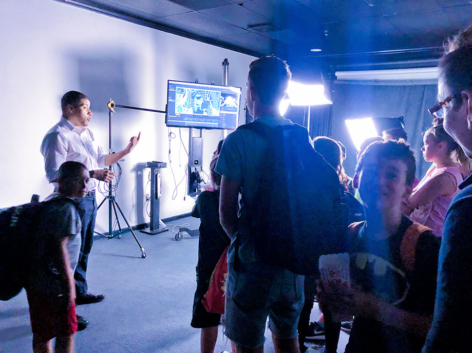 The beginning presentation, Kids learned how we use set design to build new worlds, create an immersive experience by using one of the city's largest green screen, and exploring our digital effect departments.