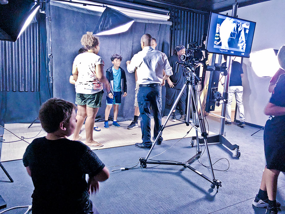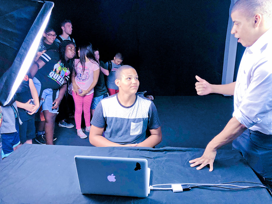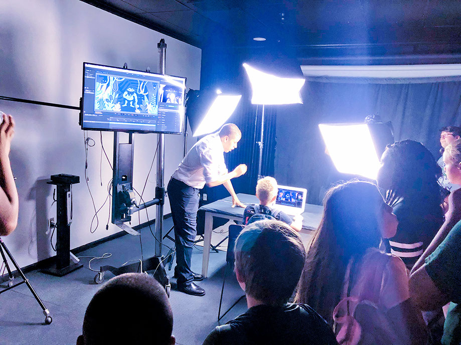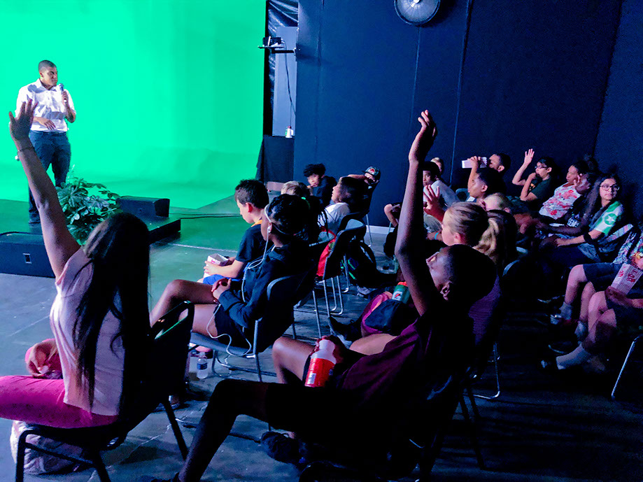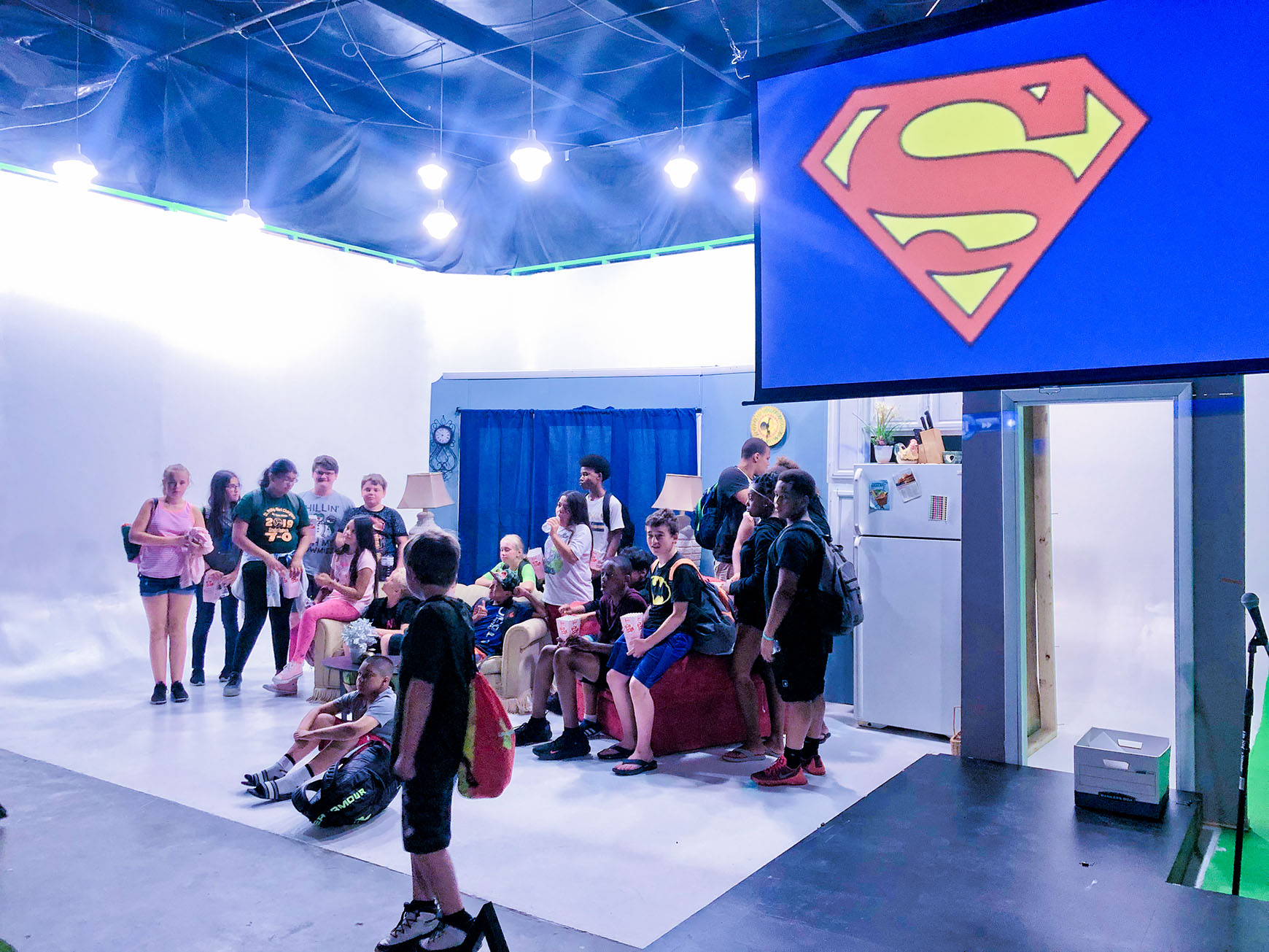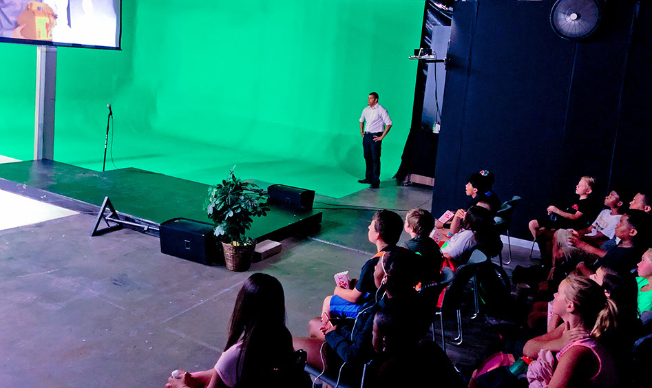 The beginning presentation, Kids learned how we use set design to build new worlds, create an immersive experience by using one of the city's largest green screen, and exploring our digital effect departments.